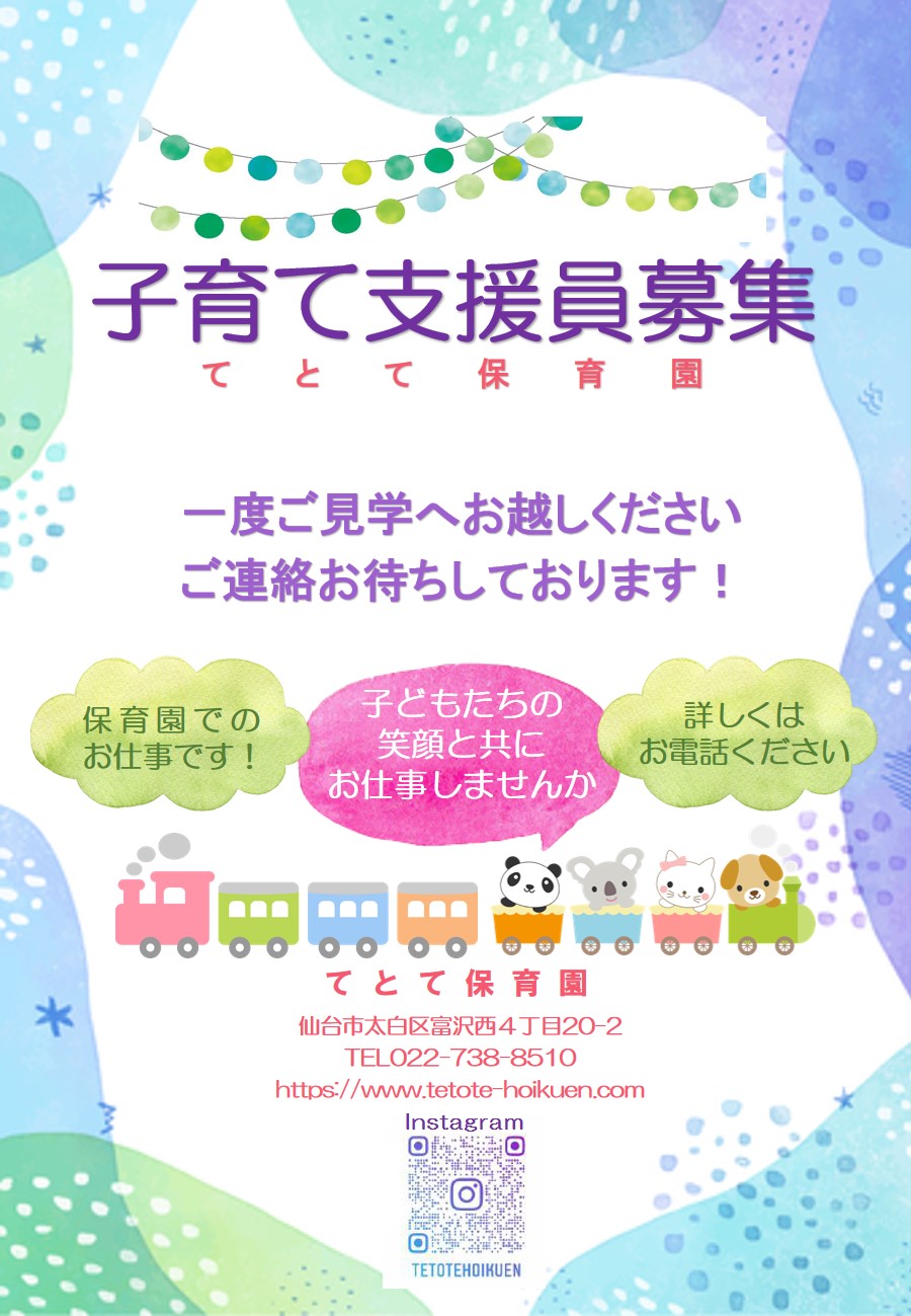 ☆てとて保育園1月23日現在0歳児2名、1歳児2名空きがございます。