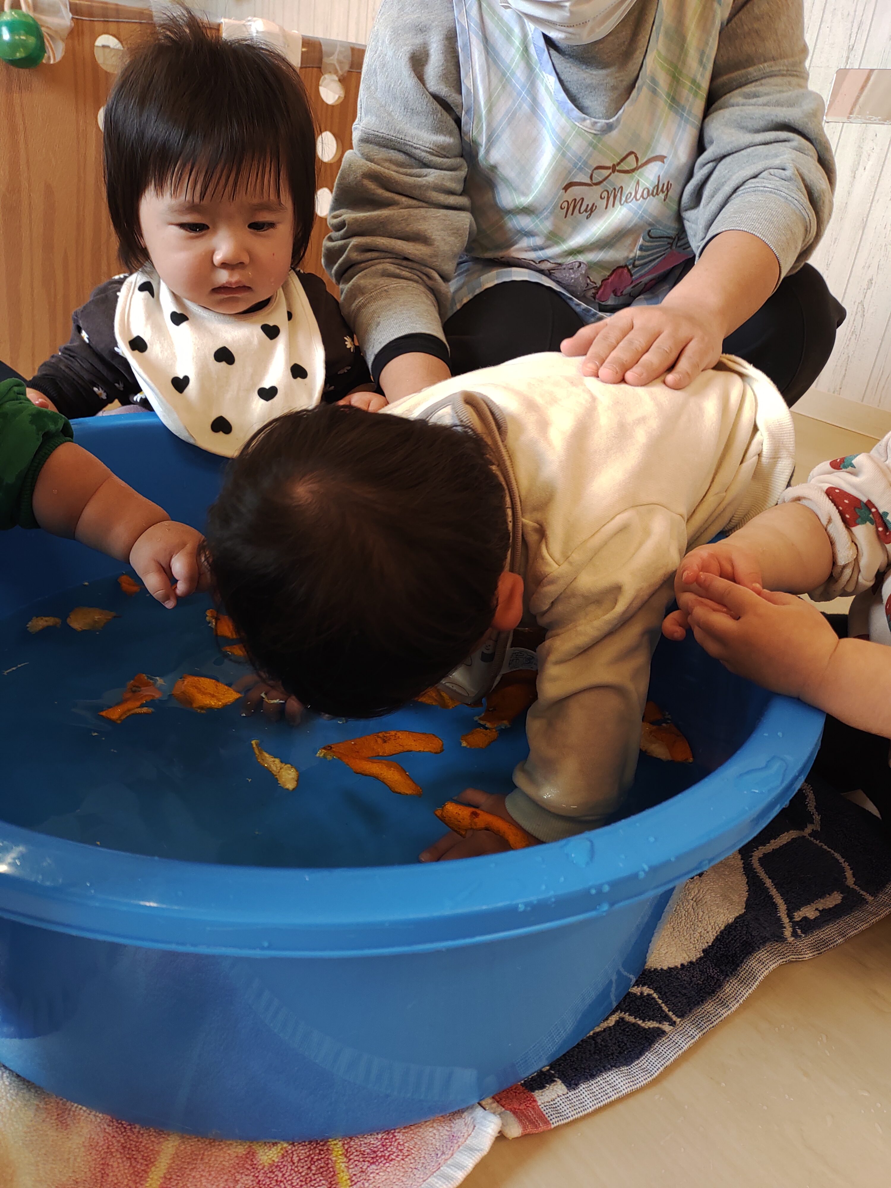 お湯の中に入ろうとすることもお友達もいて、とっても微笑ましかったです。