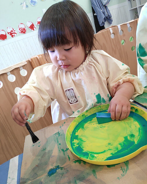 中には、自らの手を使ってフィンガーペインティングを楽しむお友達もいました。